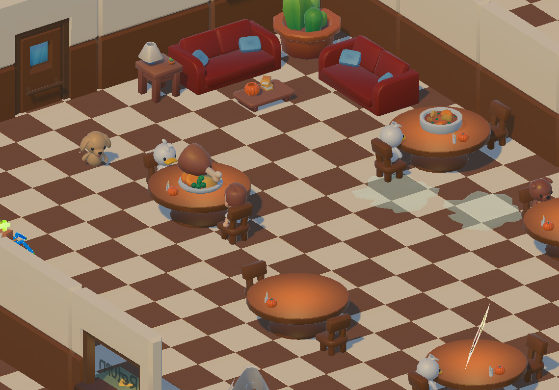 Welcome to your little autumn restaurant. In this cozy serving simulation, you’ll take care of hungry guests by delivering them food they ordered, deliver boxes for speed boosts and replenish hp, and create the perfect fall atmosphere
